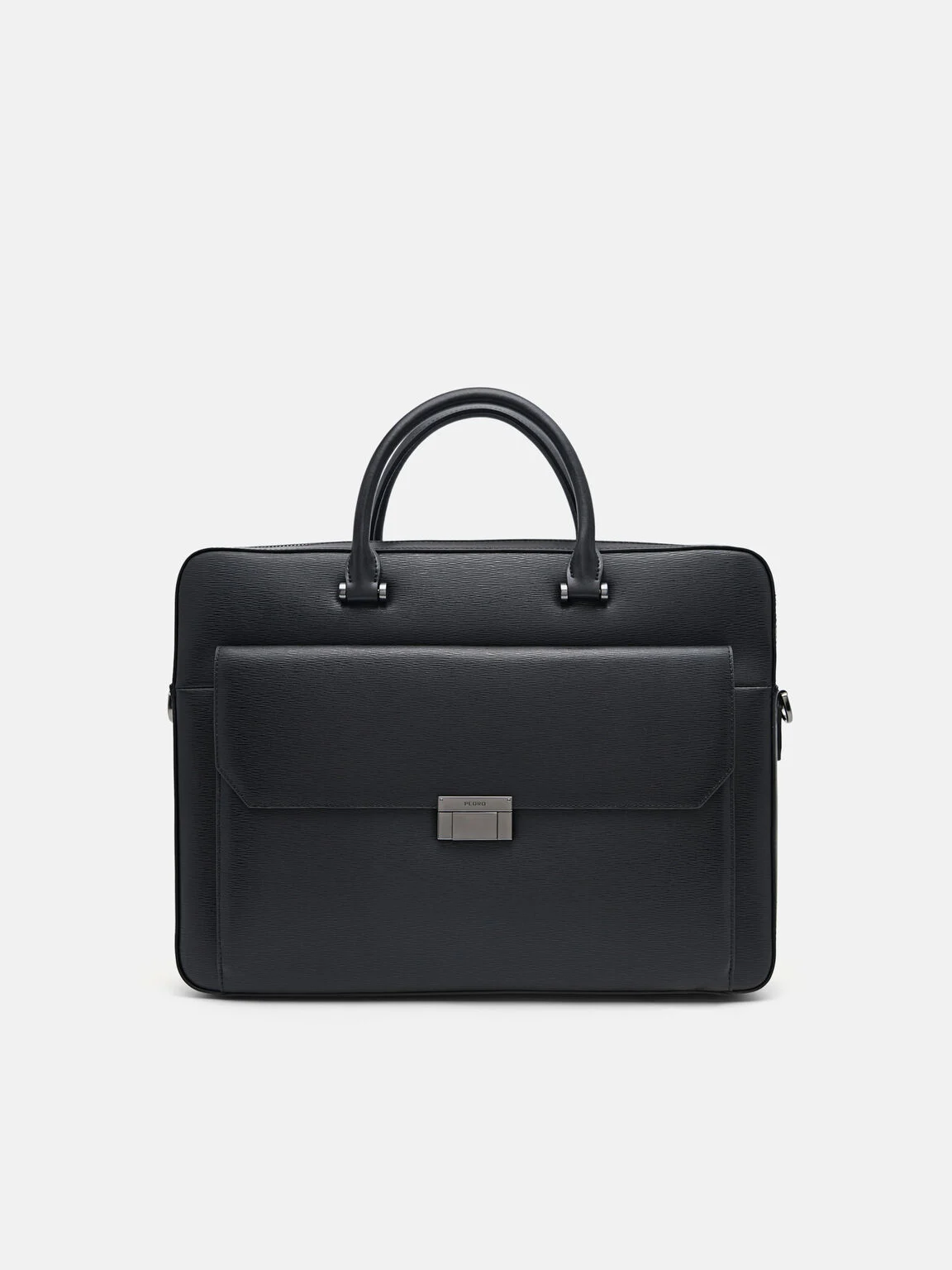 Cặp xách phom chữ nhật phối zip Henry Textured Leather – Đen
