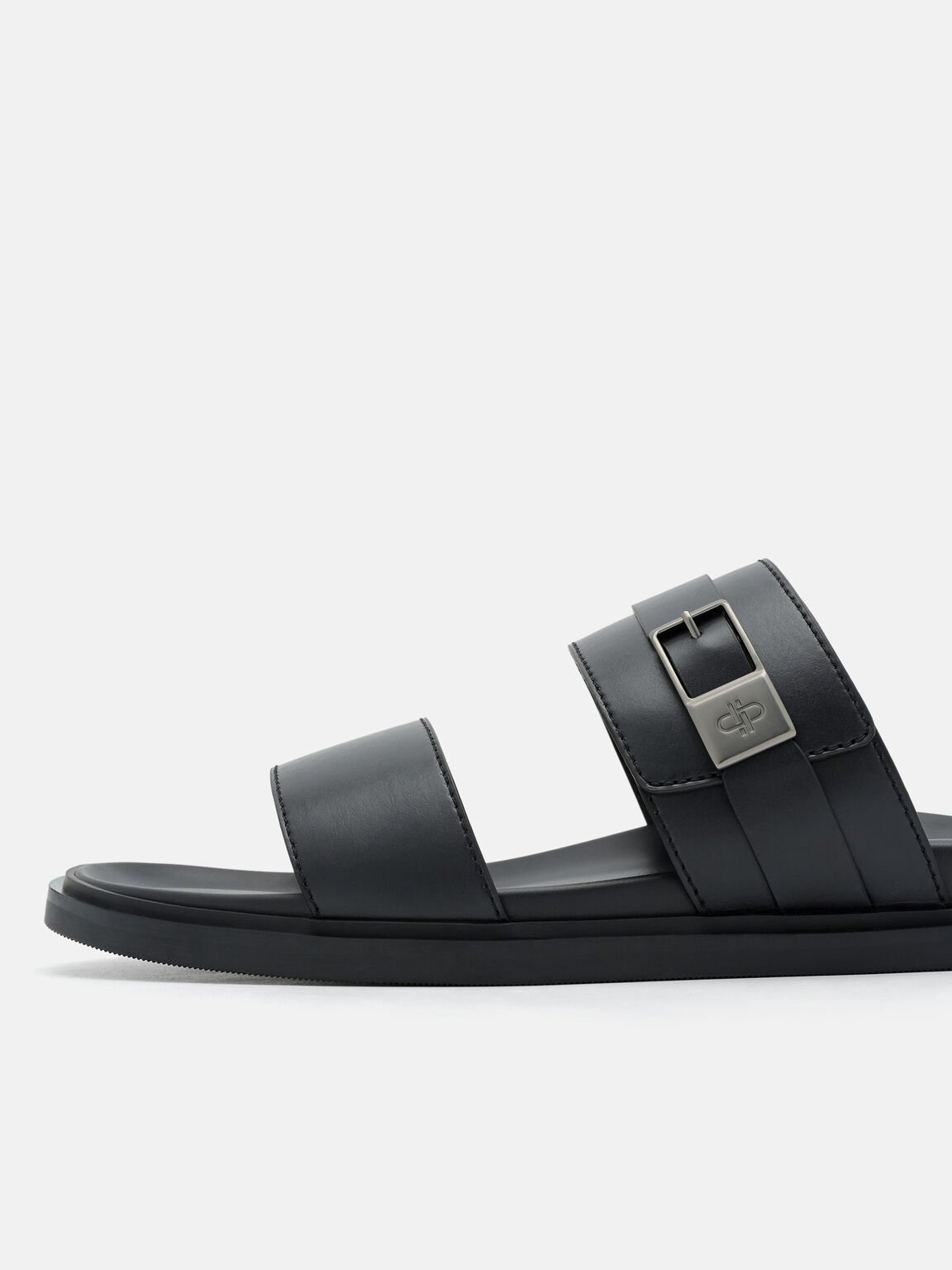 Dép quai ngang mũi tròn Double Band Buckle – Đen